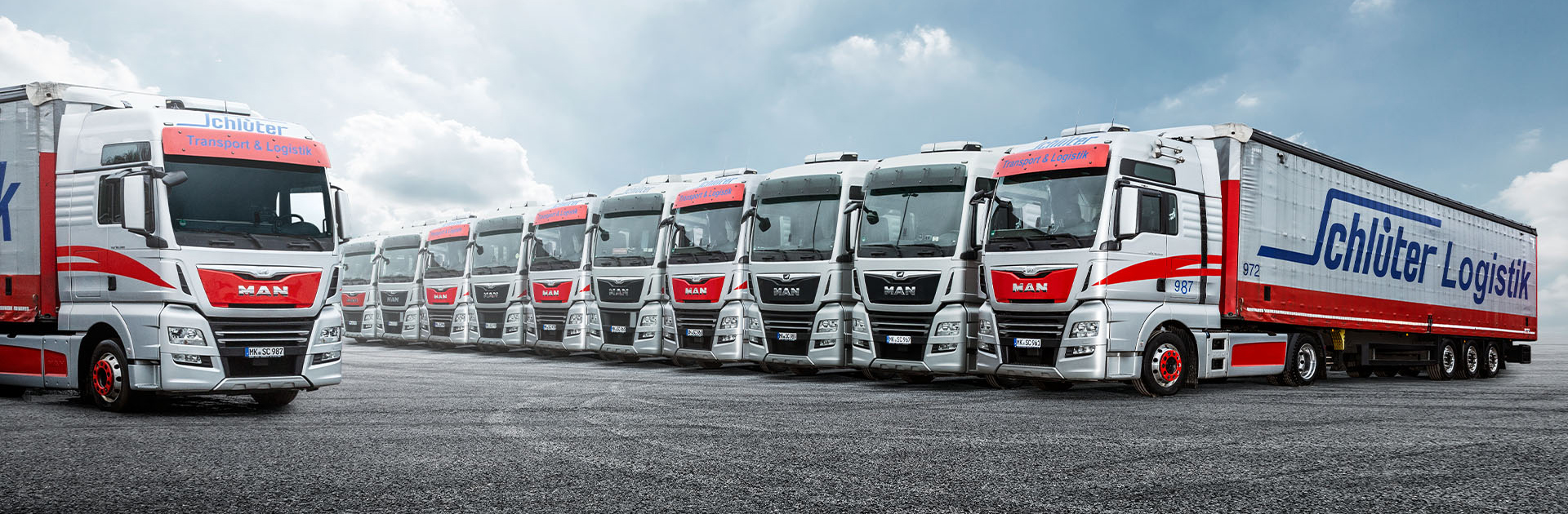 16 Fahrzeuge verfügen über Ladebordwände und 5 Fahrzeuge über Mitnahmestapler. Vom Sattelzug bis zum Gliederzug mit 33 bis 38 Europaletten- Stellplätzen. Der Gesamte Schlüter Logistic Group-Fuhrpark– ebenso wie die Ladung – werden komplett satellitenüberwacht. Das garantiert termingerechte Lieferung und Information über Ihr Ladungsgut. Regelmäßige Wartung, Reinigung und Desinfizierung der Fahrzeuge sorgen für optimale und sichere Transportbedingungen.